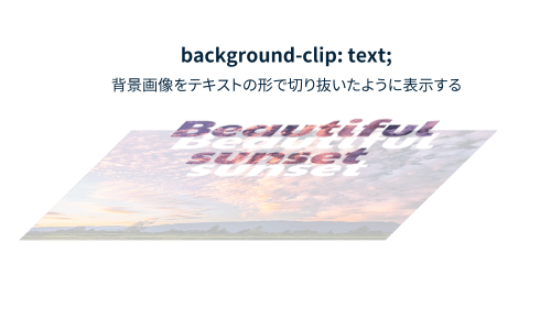 CSSのbackground-clipを使用すると、背景画像をテキストの形で切り抜いたように表示することができます。